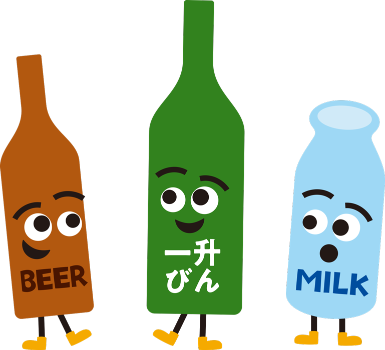 くり返し使う牛乳びんやビールびんなどを、リターナブルびんといいます。