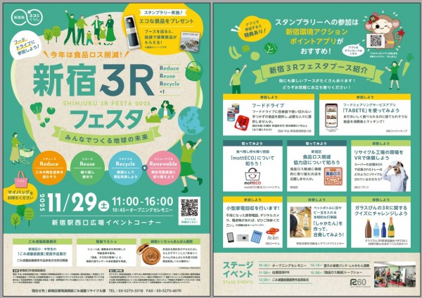 11月29日(土)、新宿駅西口広場イベントコーナーにて開催された 3R(リデュース・リユース・リサイクル)推進キャンペーンイベント 「新宿3Rフェスタ~みんなでつくる地球の未来~」に出展しました。